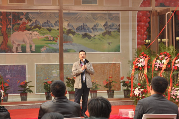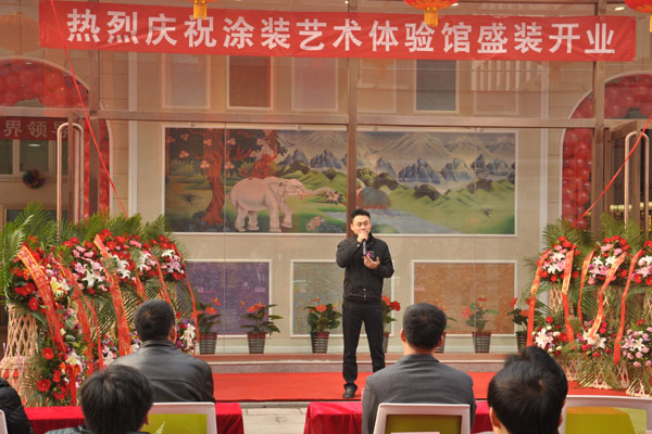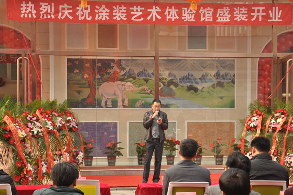 中國硅藻泥協(xié)秘書長朱厚舉為涂裝藝術(shù)體驗館開業(yè)致辭