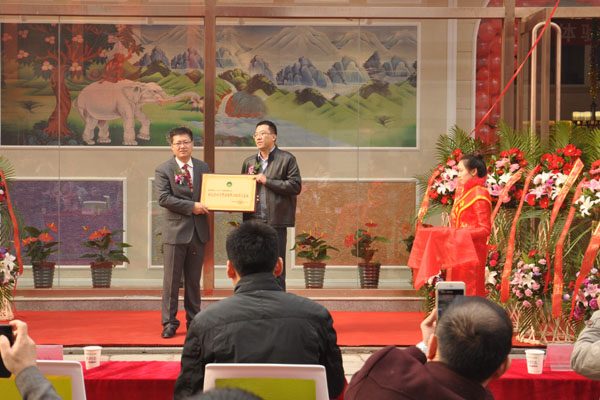 朱秘書長為涂裝藝術(shù)體驗館頒發(fā)“人居環(huán)境生態(tài)藝術(shù)涂料交流中心”銅牌