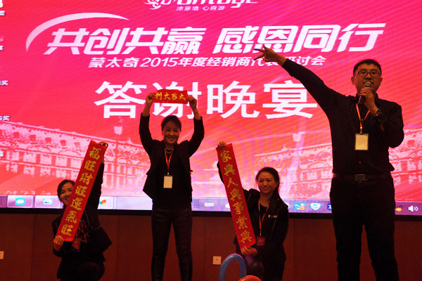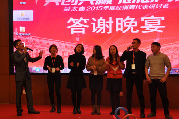 2015年蒙太奇經(jīng)銷商研討會(huì)暨公司年會(huì)在京勝利召開(kāi),晚間為進(jìn)一步促進(jìn)經(jīng)銷商與經(jīng)銷商、經(jīng)銷商與公司員工、領(lǐng)導(dǎo)人與經(jīng)銷商家人之間的交流和溝通。
