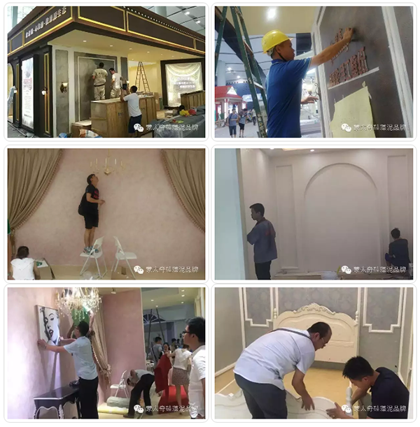 此次招商展會為了讓前來考察項目的創業者了解蒙太奇品牌的方方面面,實實在在加盟一個靠譜的品牌。從布展前期準備就集合了北京、長沙、深圳、廣州等地區的精英施工團隊,目的就是為了更好的將產品展示出來,讓您身臨其中,感受蒙太奇帶來的視覺盛宴;感受品牌的實力;感受多元化的產品魅力;感受產品帶來的綠色·環保·時尚!